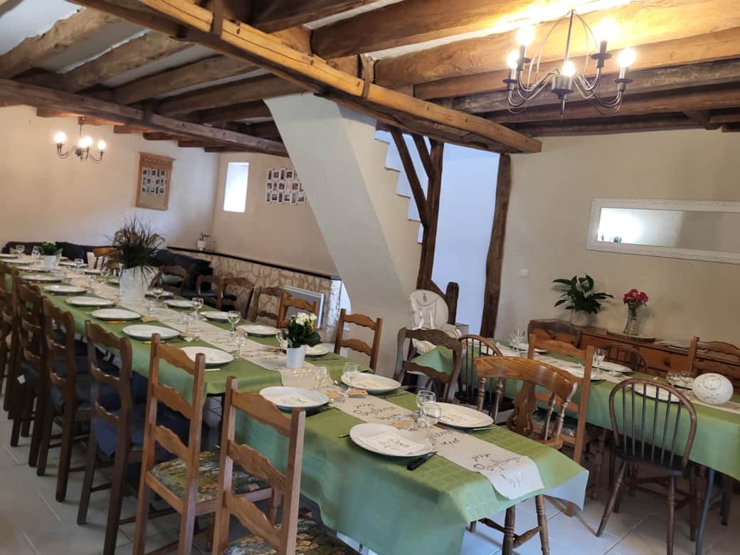 La vaste pièce de vie du gîte Le Chai se transforme très facilement en salle à manger conviviale. Idéale pour accueillir de grandes réunion de famille, un repas entre amis ou pour des occasions plus particulière ( anniversaire, baptême..) , elle offre tout le confort nécessaire pour partager des instants uniques, été comme hiver .